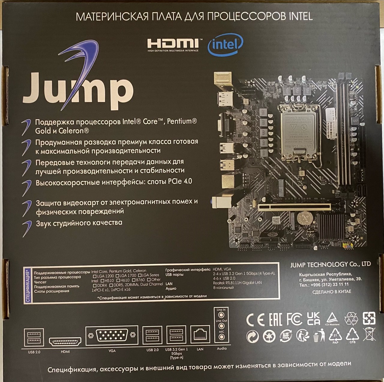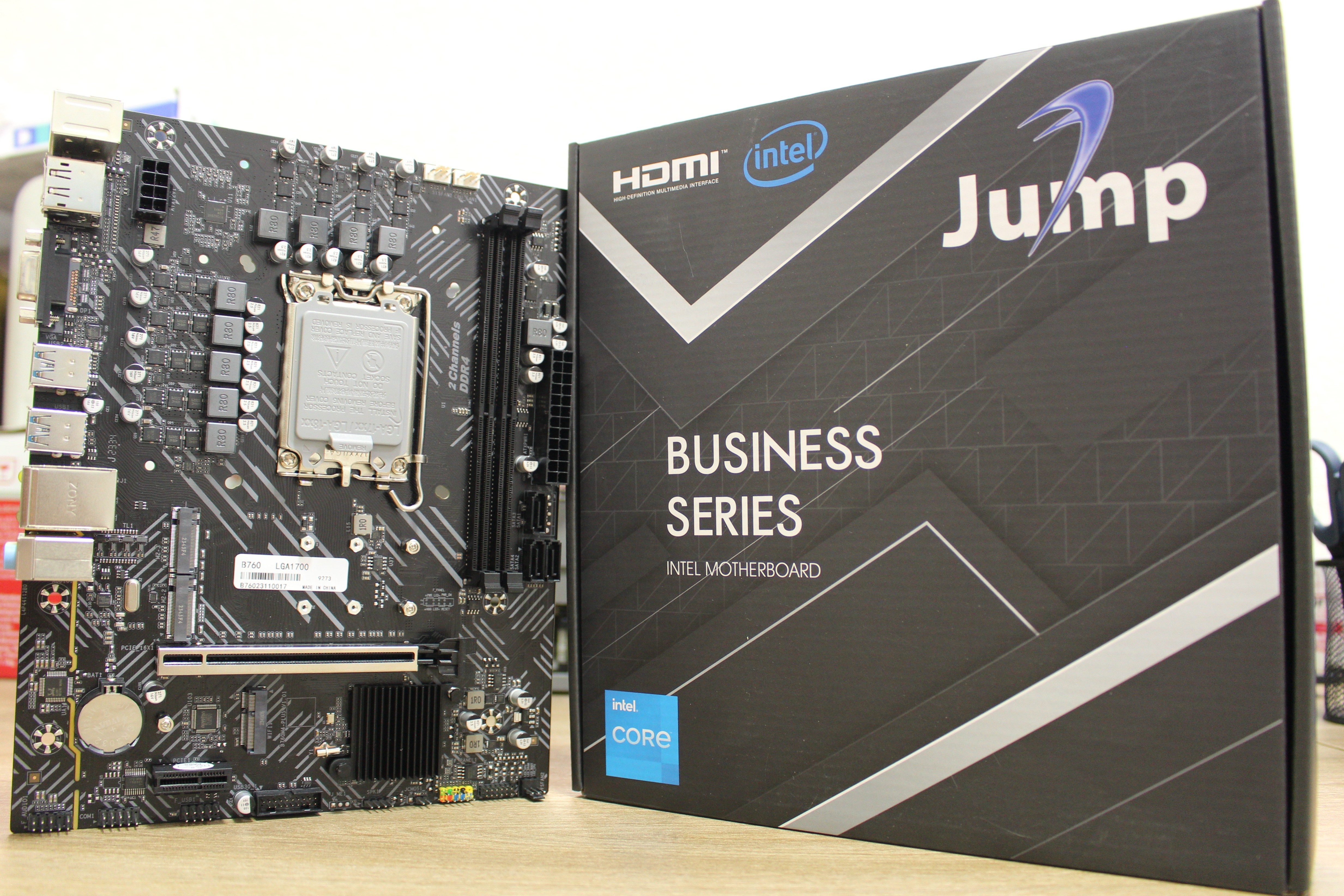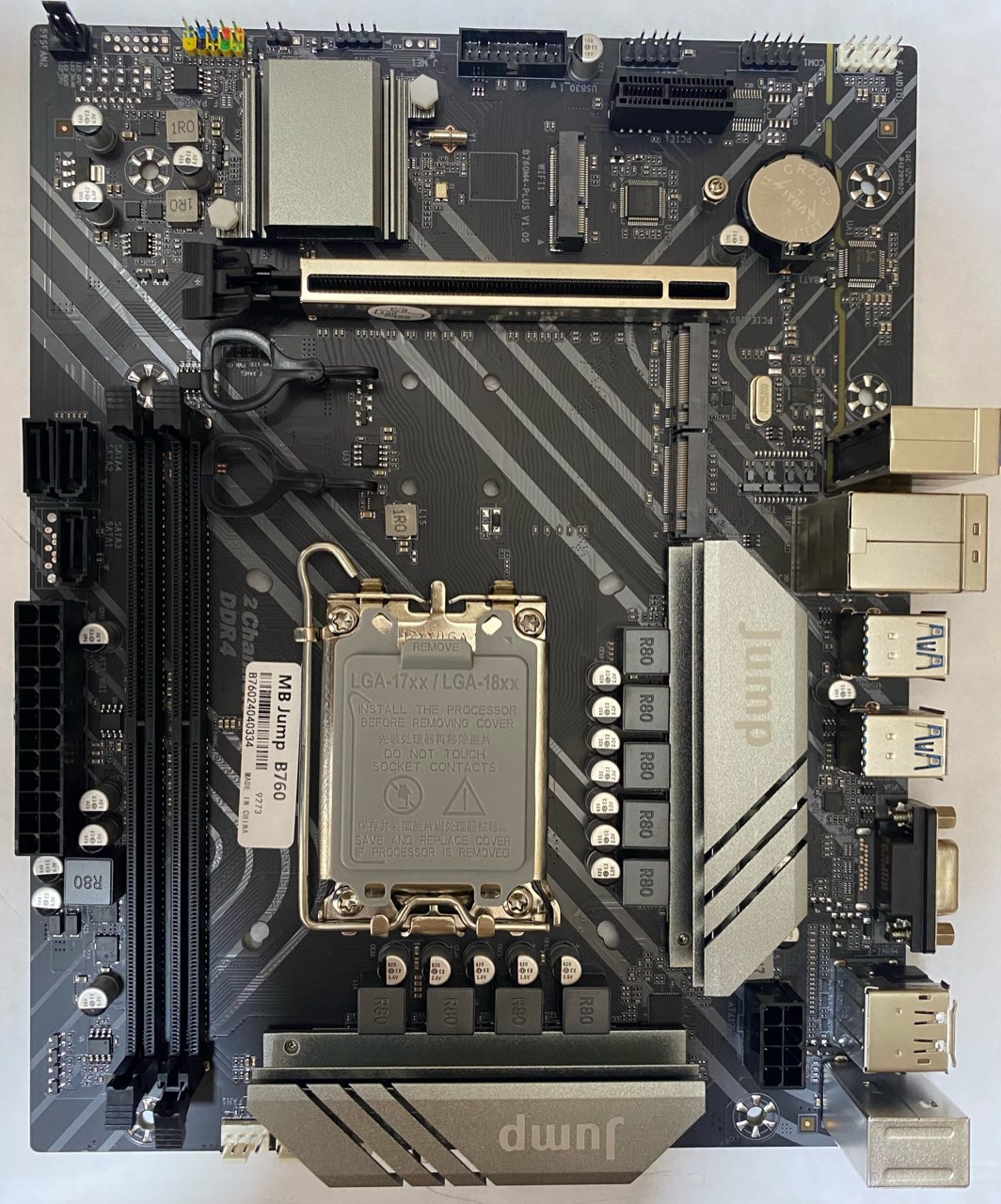 Mainboard Jump B760 (LGA1700, Intel B760, 2xPS/2, 2xDDR4, 1xPCI-E 3.0x16, 1xPCI-E 3.0x1, 4xUSB3.0, 2xUSB2.0, GLAN, 3SATA + 2xM.2, 8Ch Sound, WiFi, mATX, VGA